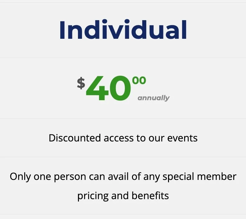 Allows one person to attend our events.
